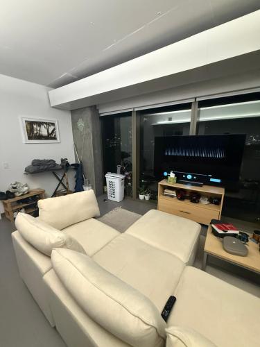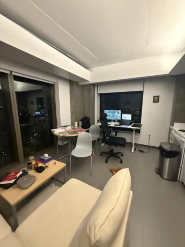 Fully furnished 17th-floor apartment equipped with all appliances, kitchenware, and essentials for a comfortable stay.