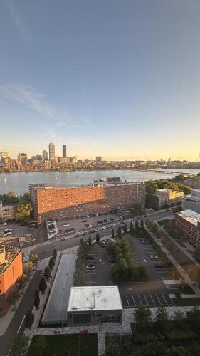 Enjoy the best Charles River views through the living room’s glass windows. The apartment includes a full workstation with monitor, a large sofa, 64" LG TV, dishwasher, bed and mattress, complete kitchen setup with cookware and cutlery, coffee table with chairs, ironing station, and more.