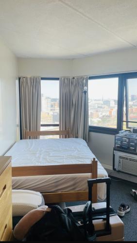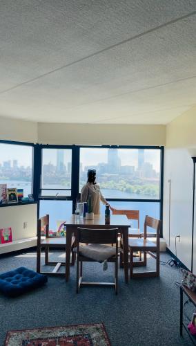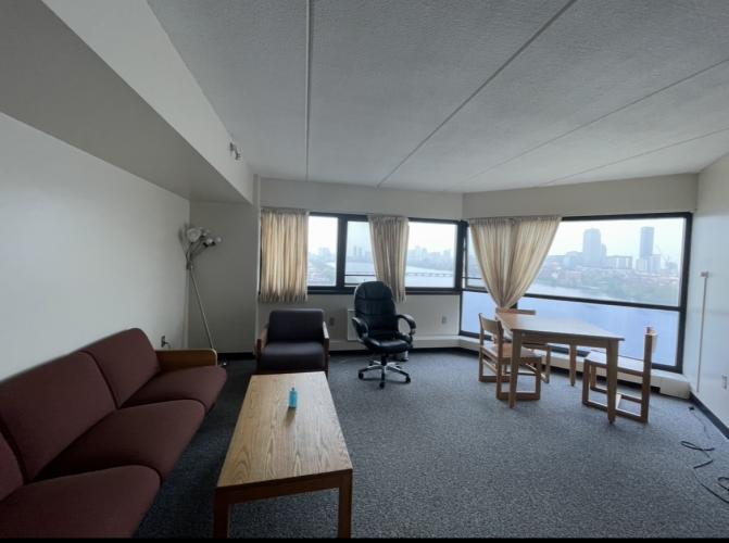 This 20th-floor 4-bed apartment has the best view possible of the river and the Boston skyline from the building (arguably from most of Cambridge) with a very spacious living room. You will most likely be one of two people in the apartment which is designed for 4 people. So there is plenty of space! The apartment has an installed air conditioner, a microwave, an air fryer, a humidifier, a TV, a speakers set and other appliances besides the Tang Hall provided fridge, oven, etc. I have upgraded my bed to a full-size mattress instead of the provided Twin mattress with sturdy bed extenders. My room is a corner room so it is significantly bigger than most other Tang Hall rooms.