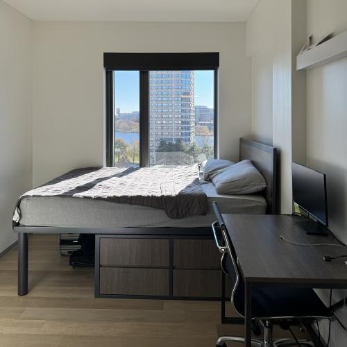 Located on the 9th floor and facing south, you will always get the beautiful view of the Charles River and ample sunlight (first picture taken from the bed)! This applies both for the bedroom and the living room. Too bright in the summer? Don't worry, the two window shades can control exactly how much sunlight you want, from complete darkness to the brightest sunshine! The A/C is central and all utilities including electricity are included in the rent.