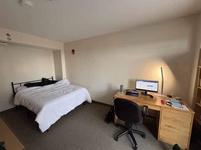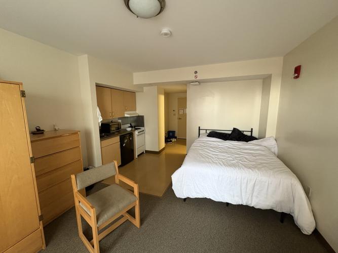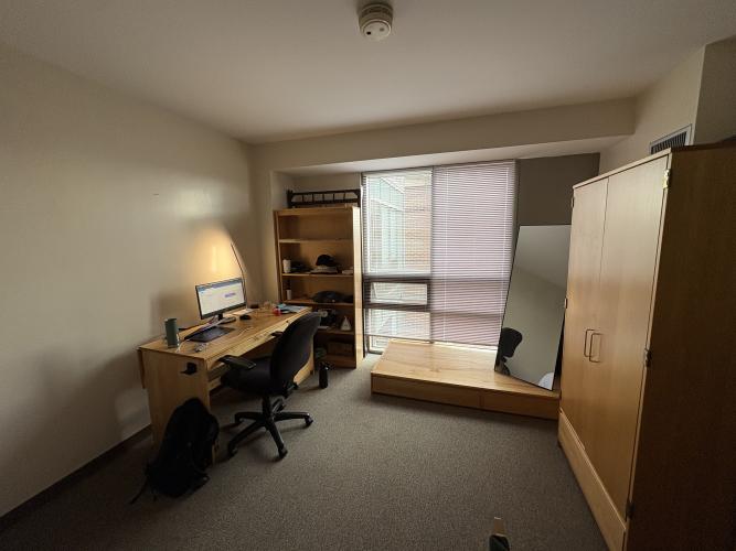 - Desk + chair, dining table, wardrobe/clothes rack, and other basic furniture