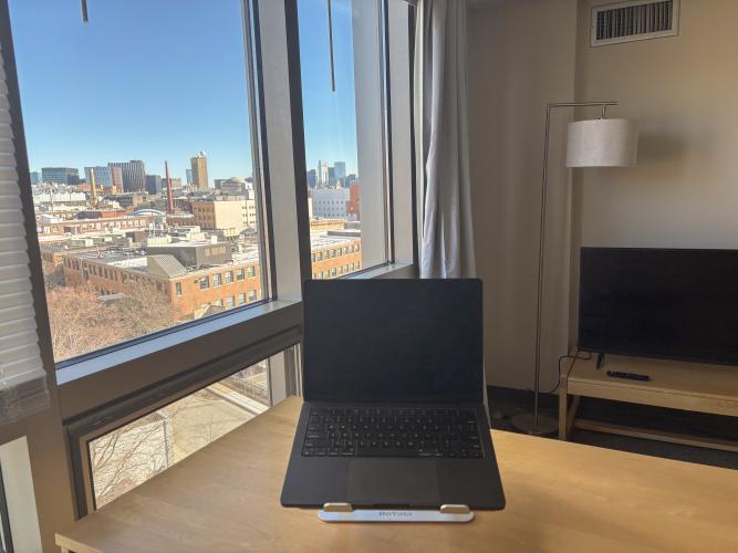 The room is located on the 8th floor and offers a beautiful view of Boston, great natural light.